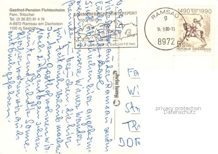 73712942 alte Postkarte Ramsau Berchtesgaden Gasthof Pension Fichtenheim postalisch gelaufen Erhaltung siehe scans [WerneD78] KatCode: 11110009172129