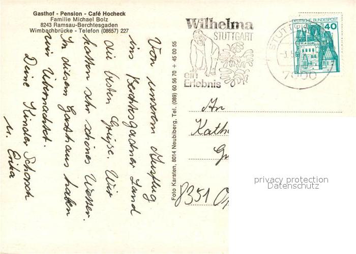 73174032 alte Postkarte Ramsau Berchtesgaden Gasthof Pension Hocheck Alpenblick postalisch gelaufen Erhaltung siehe scans [FriedD77] KatCode: 11110009172129