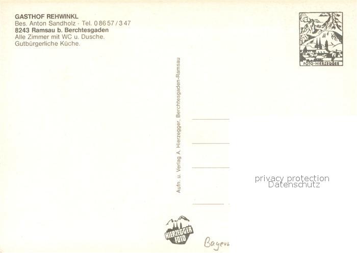 73646342 Ramsau Berchtesgaden Gasthof Rehwinkel postalisch nicht gelaufen Erhaltung siehe scans [WerneD78] KatCode: 11110009172129