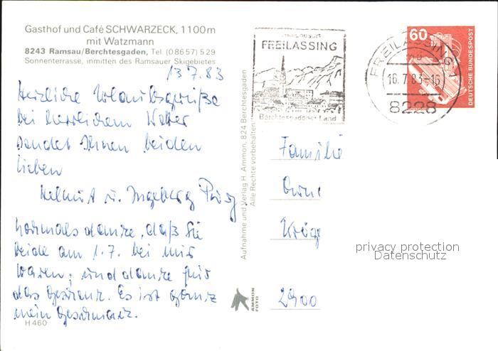 72539290 alte Postkarte Ramsau Berchtesgaden Gasthof und Cafe Schwarzeck postalisch gelaufen Erhaltung siehe scans [AndreD76 kt119box] KatCode: 11110009172129