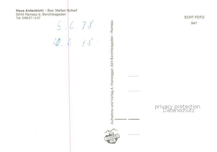 73724712 Ramsau Berchtesgaden Haus Antenbichl Gaestehaus Pension Alpen postalisch nicht gelaufen Erhaltung siehe scans [FriedD77] KatCode: 11110009172129