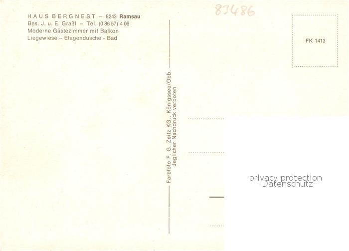 73865310 Ramsau Berchtesgaden Haus Bergnest Gaestehaus Pension postalisch nicht gelaufen Erhaltung siehe scans [FriedD77] Frie Katcode 11110009172129