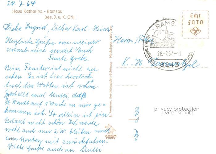 73643489 alte Postkarte Ramsau Berchtesgaden Haus Katharina postalisch gelaufen Erhaltung siehe scans [WerneD78] KatCode: 11110009172129