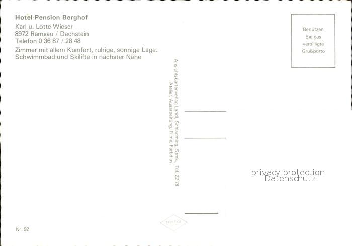 72591538 Ramsau Berchtesgaden Hotel Pension Berghof postalisch nicht gelaufen Erhaltung siehe scans [WerneD78] KatCode: 11110009172129