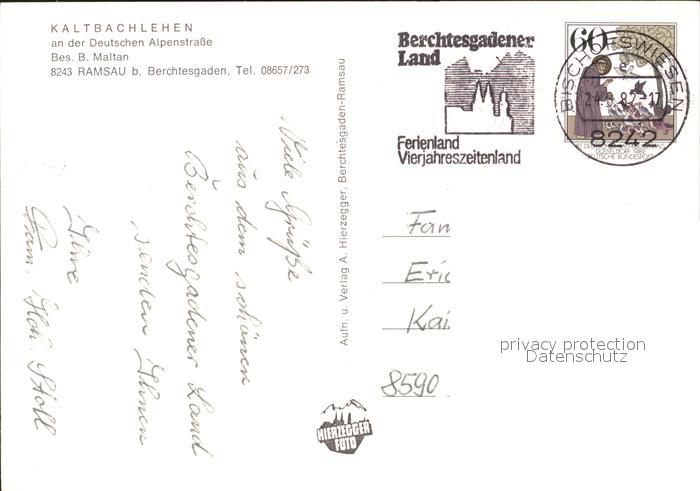 71829252 alte Postkarte Ramsau Berchtesgaden Kaltbachlehen Gasthof postalisch gelaufen Erhaltung siehe scans KatCode: 11110009172129