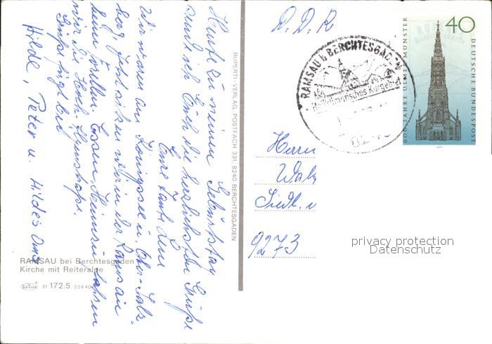 72423952 alte Postkarte Ramsau Berchtesgaden Kirche mit Reiteralpe postalisch gelaufen Erhaltung siehe scans KatCode: 11110009172129