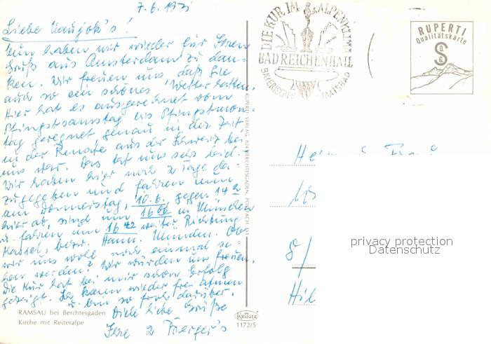 72692986 alte Postkarte Ramsau Berchtesgaden Kirche mit Reiteralpe postalisch gelaufen Erhaltung siehe scans [FriedD77] KatCode: 11110009172129