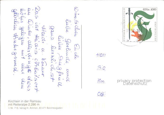 72376128 alte Postkarte Ramsau Berchtesgaden Kirchlein Reiteralpe postalisch gelaufen Erhaltung siehe scans KatCode: 11110009172129