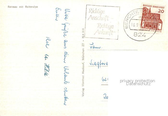 73156553 alte Postkarte Ramsau Berchtesgaden Ortsansicht mit Kirche Reiteralpe Berchtesgadener Alpen postalisch gelaufen Erhaltung siehe scans [FriedD77] KatCode: 11110009172129
