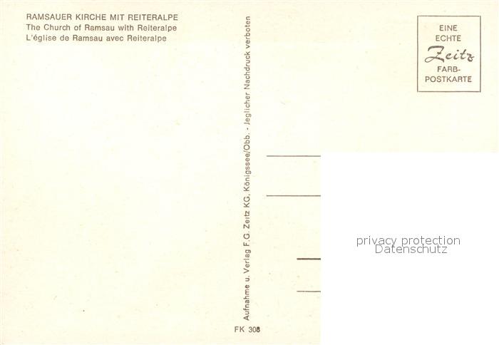 73129999 Ramsau Berchtesgaden Ramsauer Kirche Reiteralpe postalisch nicht gelaufen Erhaltung siehe scans [KathaD81] KatCode: 11110009172129