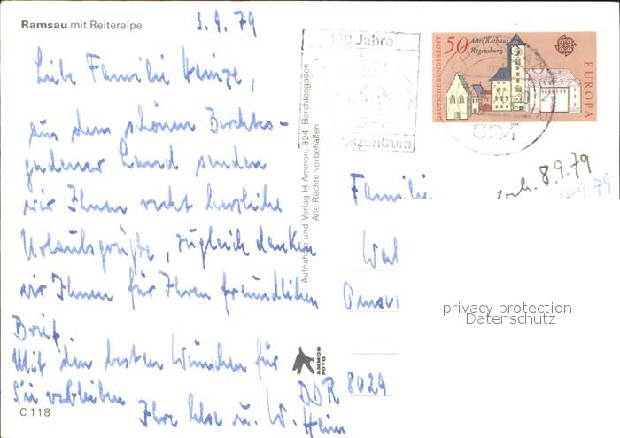 72382111 alte Postkarte Ramsau Berchtesgaden Reiteralpe postalisch gelaufen Erhaltung siehe scans KatCode: 11110009172129