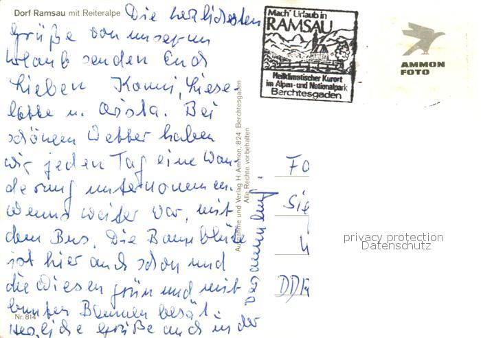 73084855 alte Postkarte Ramsau Berchtesgaden Reiteralpe postalisch gelaufen Erhaltung siehe scans [NatalD47] KatCode: 11110009172129