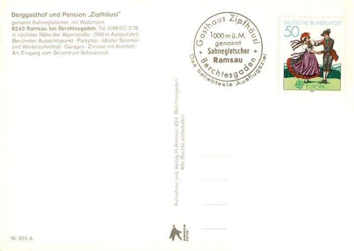 73881602 Ramsau Berchtesgaden Zipfhaeusl Gaststube Panorama Sahnegletscher am Soleleitungsweg postalisch gelaufen Erhaltung siehe scans [WerneD78] alte Postkarte Wern Katcode 11110009172129