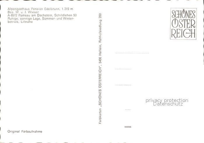 71822188 Ramsau Dachstein Steiermark Alpengasthaus Edelbrunn postalisch nicht gelaufen Erhaltung siehe scans KatCode: 11390222061236