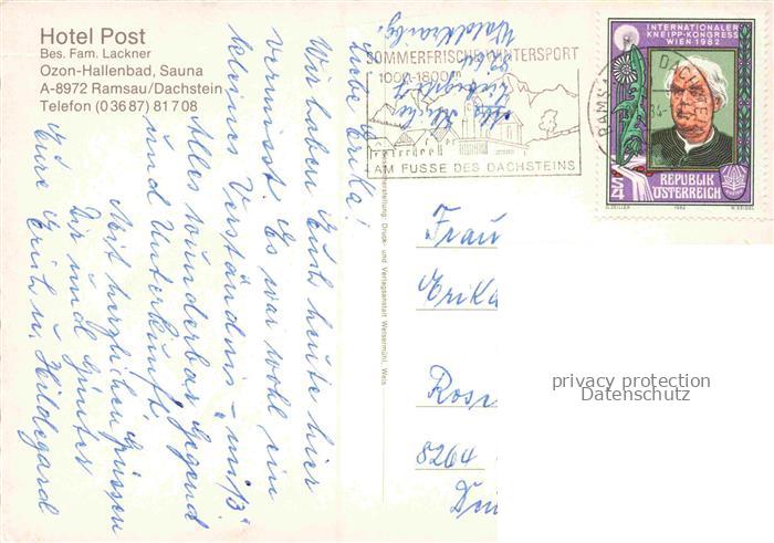 74148777 alte Postkarte RAMSAU Dachstein Steiermark AT Hotel Post postalisch gelaufen Erhaltung siehe scans [FriedD77] KatCode: 11390222061236
