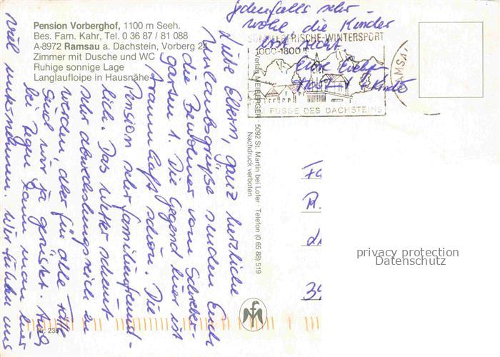74037738 alte Postkarte Ramsau Dachstein Steiermark AT Pension Vorberghof Gastraum Alpenblick postalisch gelaufen Erhaltung siehe scans [FriedD77] KatCode: 11390222061236