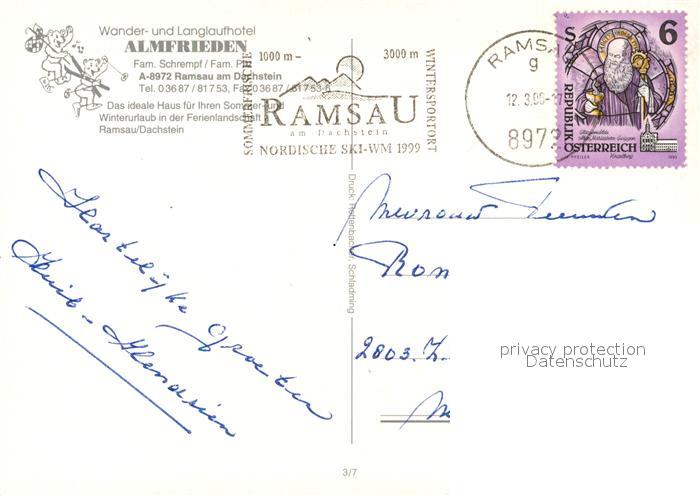 73326039 alte Postkarte Ramsau Dachstein Steiermark Berggasthof Almfrieden Winterimpressionen Dachsteingebirge postalisch gelaufen Erhaltung siehe scans [FriedD77] KatCode: 11390222061236