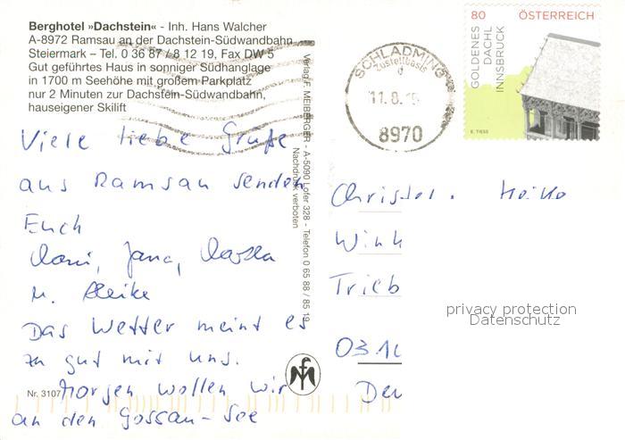 73713592 alte Postkarte Ramsau Dachstein Steiermark Berghotel Dachstein Dachsteingebirge Suedwand postalisch gelaufen Erhaltung siehe scans [FriedD77] KatCode: 11390222061236