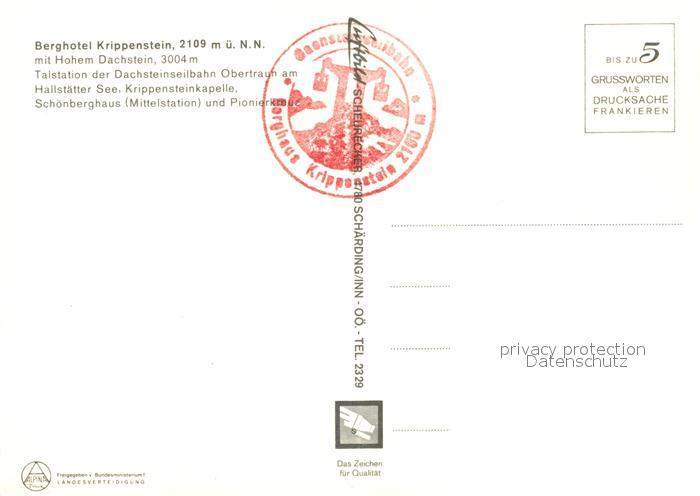 73234358 Ramsau Dachstein Steiermark Berghotel Krippenstein mit Hohem Dachstein Bergbahn Bergkapelle Schoenberghaus Pionierkreuz postalisch nicht gelaufen Erhaltung siehe scans [FriedD77] KatCode: 11390222061236