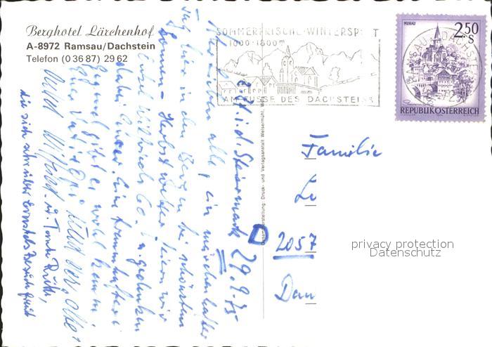 71959678 alte Postkarte Ramsau Dachstein Steiermark Berghotel Laerchenhof postalisch gelaufen Erhaltung siehe scans KatCode: 11390222061236