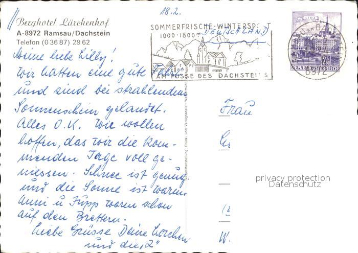 72479112 alte Postkarte Ramsau Dachstein Steiermark Berghotel Laerchenhof Gastraeume postalisch gelaufen Erhaltung siehe scans KatCode: 11390222061236