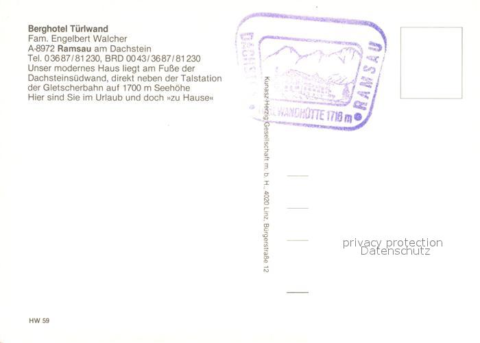 73105436 Ramsau Dachstein Steiermark Berghotel Tuerlwand postalisch nicht gelaufen Erhaltung siehe scans [WerneD78] KatCode: 11390222061236