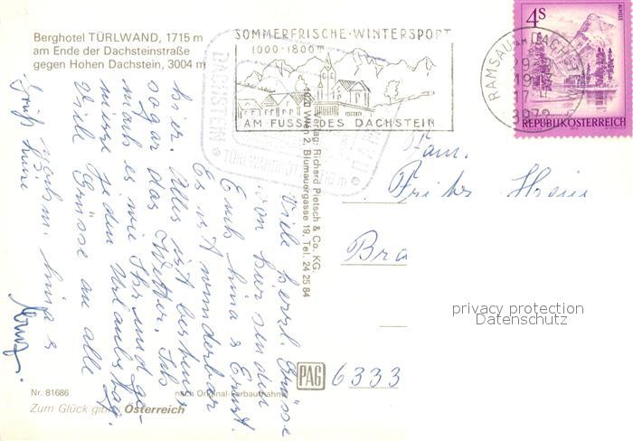 73319141 alte Postkarte Ramsau Dachstein Steiermark Berghotel Tuerlwand gegen Hohen Dachstein Dachsteingebirge postalisch gelaufen Erhaltung siehe scans [FriedD77] KatCode: 11390222061236