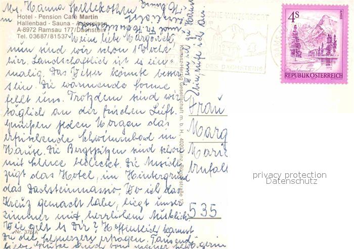 72814000 alte Postkarte Ramsau Dachstein Steiermark Cafe Pension Hotel Martin postalisch gelaufen Erhaltung siehe scans [LiesaD40] KatCode: 11390222061236
