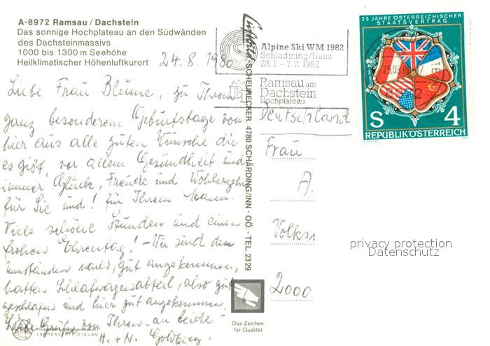 73161284 alte Postkarte Ramsau Dachstein Steiermark Dachsteinmassiv Fliegeraufnahme postalisch gelaufen Erhaltung siehe scans [KathaD81] KatCode: 11390222061236