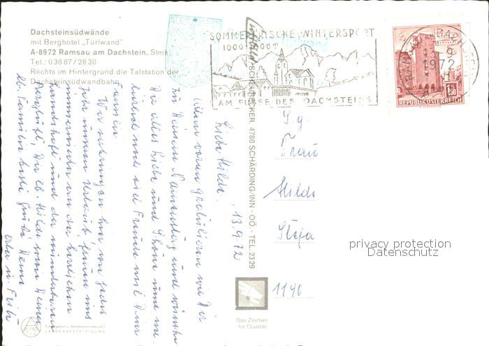 72375718 alte Postkarte Ramsau Dachstein Steiermark Dachsteinsuedwaende mit Berghotel Tuerlwand postalisch gelaufen Erhaltung siehe scans KatCode: 11390222061236