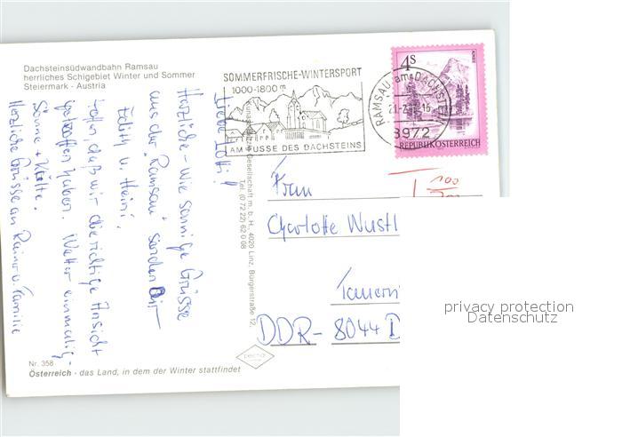 72362302 alte Postkarte Ramsau Dachstein Steiermark Dachsteinsuedwandbahn Skigebiet postalisch gelaufen Erhaltung siehe scans KatCode: 11390222061236