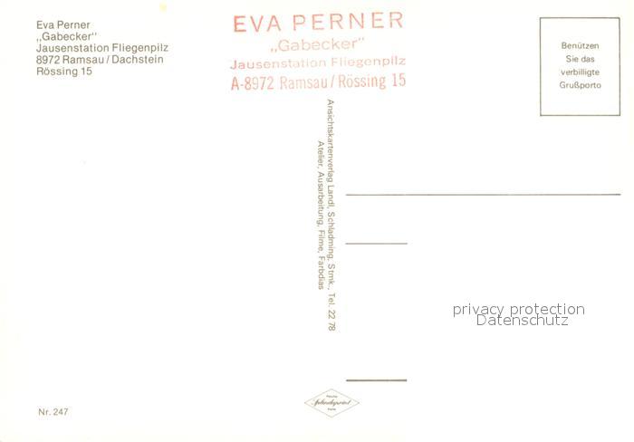 73326002 Ramsau Dachstein Steiermark Eva Perner Gabecker Jausenstation Fliegenpilz Alpen postalisch nicht gelaufen Erhaltung siehe scans [FriedD77] KatCode: 11390222061236
