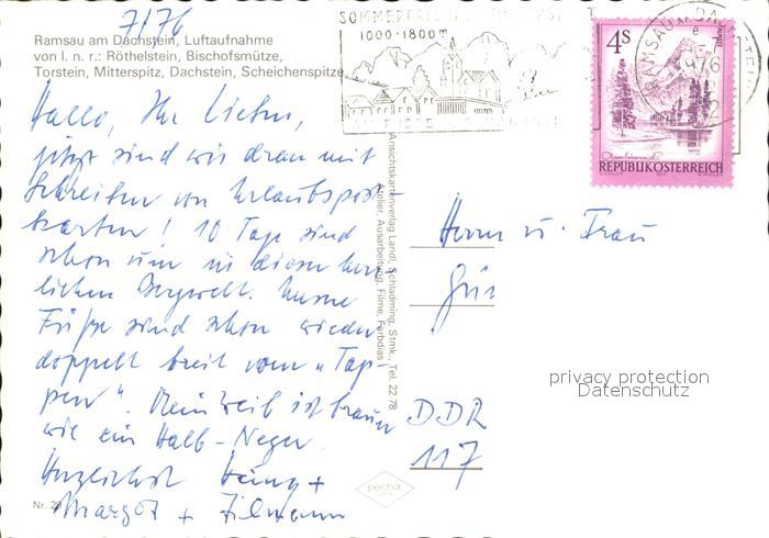 72033856 alte Postkarte Ramsau Dachstein Steiermark Fliegeraufnahme Dachsteingebirge postalisch gelaufen Erhaltung siehe scans KatCode: 11390222061236