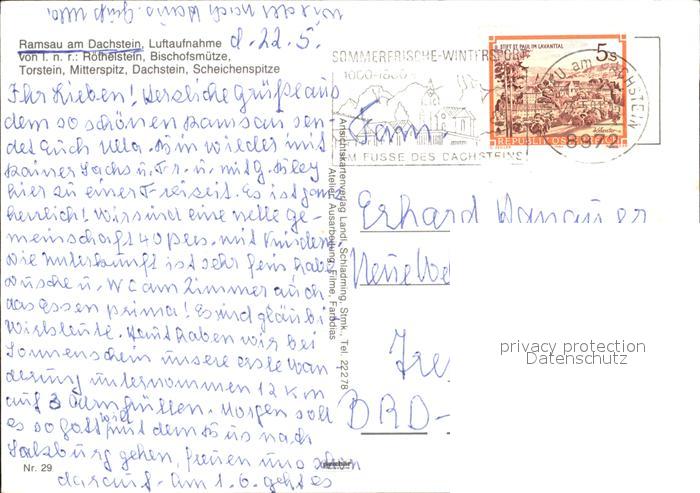 72489771 alte Postkarte Ramsau Dachstein Steiermark Fliegeraufnahme mit Roethelstein Bischofsmuetze Torstein Scheichenspitze postalisch gelaufen Erhaltung siehe scans KatCode: 11390222061236