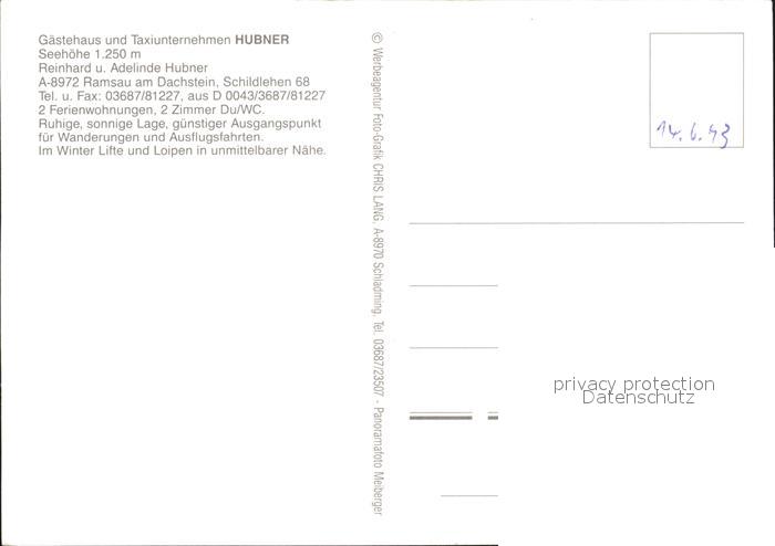 72288402 Ramsau Dachstein Steiermark Gaestehaus Hubner postalisch nicht gelaufen Erhaltung siehe scans KatCode: 11390222061236
