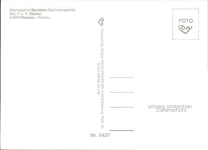 72494806 Ramsau Dachstein Steiermark Gasthaus Bachl-Alm postalisch nicht gelaufen Erhaltung siehe scans KatCode: 11390222061236