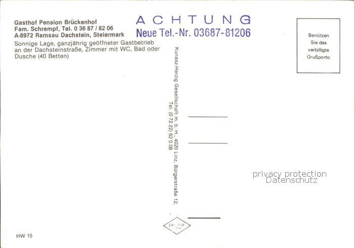 71925622 Ramsau Dachstein Steiermark Gasthaus Pension Brueckenhof postalisch nicht gelaufen Erhaltung siehe scans KatCode: 11390222061236