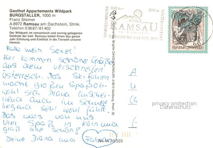 73625207 alte Postkarte Ramsau Dachstein Steiermark Gasthof Burgstaller Wildpark mit Rot- und Schwarzwild postalisch gelaufen Erhaltung siehe scans [FriedD77] KatCode: 11390222061236