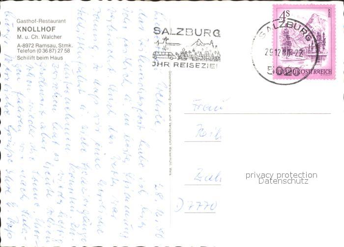 71960057 alte Postkarte Ramsau Dachstein Steiermark Gasthof Restaurant Knollhof postalisch gelaufen Erhaltung siehe scans KatCode: 11390222061236