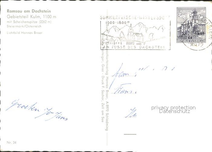71983098 alte Postkarte Ramsau Dachstein Steiermark Gebietsteil Kulm mit Scheichenspitze postalisch gelaufen Erhaltung siehe scans KatCode: 11390222061236