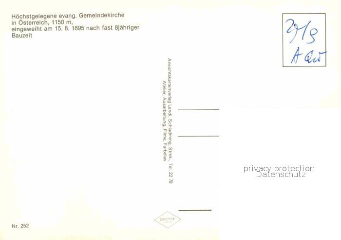 72849480 Ramsau Dachstein Steiermark Gemeindekirche postalisch nicht gelaufen Erhaltung siehe scans [KathaD81] KatCode: 11390222061236