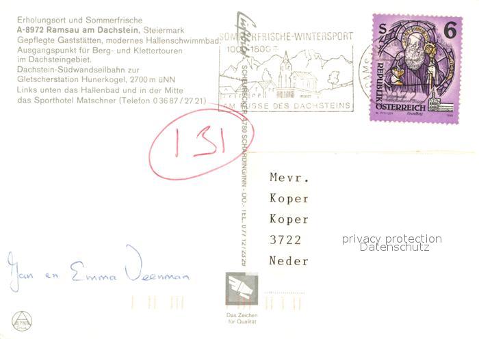 73017253 alte Postkarte Ramsau Dachstein Steiermark Hallenbad Sporthotel Matschner postalisch gelaufen Erhaltung siehe scans [NatalD47] KatCode: 11390222061236