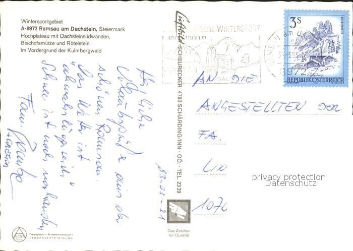 72210657 alte Postkarte Ramsau Dachstein Steiermark Hochplateau mit Dachsteinsuedwaenden Bischofsmuetze und Roetelstein postalisch gelaufen Erhaltung siehe scans KatCode: 11390222061236