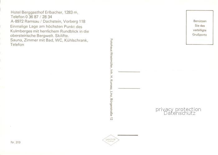 73512828 Ramsau Dachstein Steiermark Hotel Berggasthof Erbacher Winter postalisch nicht gelaufen Erhaltung siehe scans [KathaD81] KatCode: 11390222061236