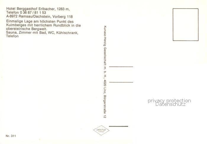 73270258 Ramsau Dachstein Steiermark Hotel-Berggasthof Erlbacher postalisch nicht gelaufen Erhaltung siehe scans [PaolaD17] KatCode: 11390222061236