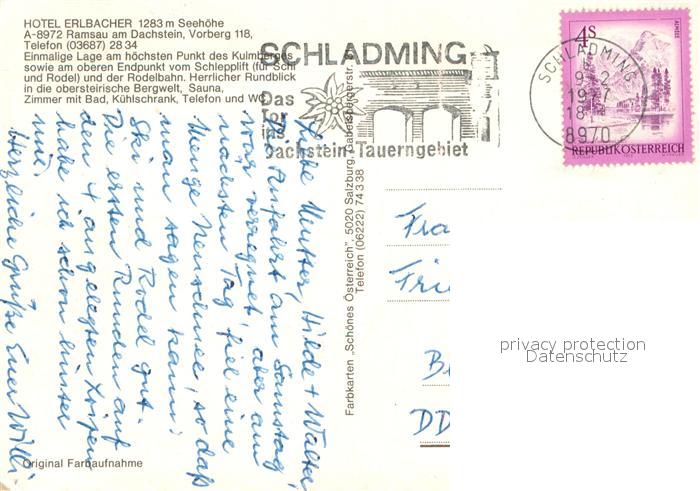13631114 alte Postkarte Ramsau Dachstein Steiermark Hotel Erlbacher Skilift Wintersportplatz Alpen postalisch gelaufen Erhaltung siehe scans [FriedD77] KatCode: 11390222061236