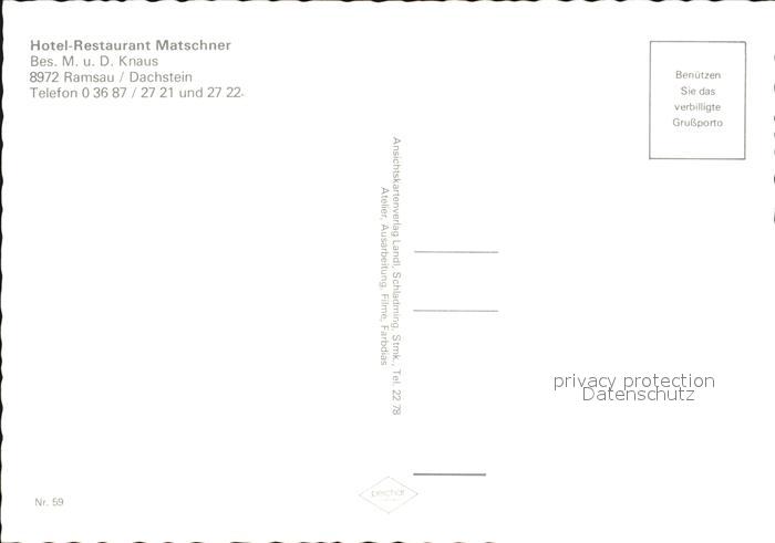 72457448 Ramsau Dachstein Steiermark Hotel Restaurant Matschner postalisch nicht gelaufen Erhaltung siehe scans KatCode: 11390222061236