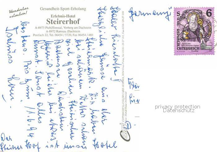 72849793 alte Postkarte Ramsau Dachstein Steiermark Hotel Steirerhof postalisch gelaufen Erhaltung siehe scans [NatalD47] KatCode: 11390222061236