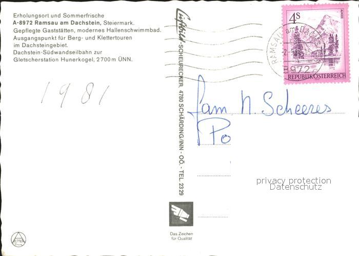 72470068 alte Postkarte Ramsau Dachstein Steiermark Hunerkogel Suedwandseilbahn postalisch gelaufen Erhaltung siehe scans KatCode: 11390222061236