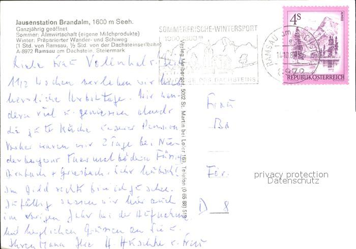 72036504 alte Postkarte Ramsau Dachstein Steiermark Jausenstation Brandalm Terrasse postalisch gelaufen Erhaltung siehe scans KatCode: 11390222061236